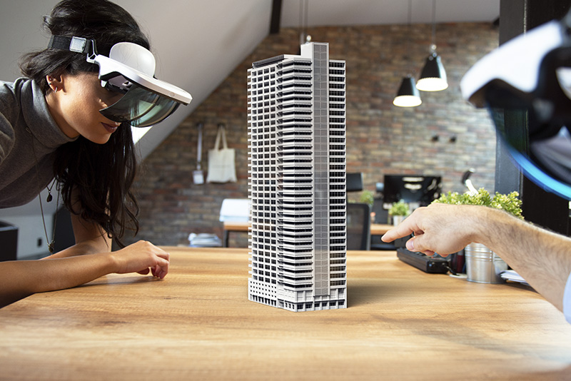 Was bedeutet digitale Transformation im Bereich Real Estate? BIM ist nicht nur Teil der Antwort, sondern führt uns den Megatrend ganz konkret vor Augen. Zum Bespiel, indem ein Gebäude per 3D-Brille virtuell begeh- und erlebbar wird. Denn mit BIM erhält Ihr geplantes oder bestehendes Gebäude einen digitalen Zwilling. In dem 3D-Gebäudemodell werden Architektur, Technische Gebäudeausrüstung, Tragwerk und Anlagen visualisiert. Bereits im Planungsprozess können so Kollisionen erkannt und vermieden werden. Da sämtliche physikalischen Gebäudedaten im Modell hinterlegt und für alle beteiligten Gewerke zugänglich sind, werden Informationsverluste minimiert und ein reibungsloser Workflow gewährleistet.